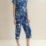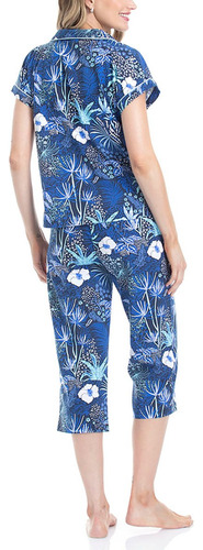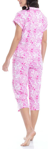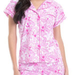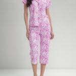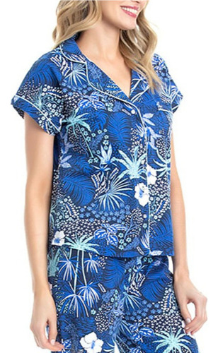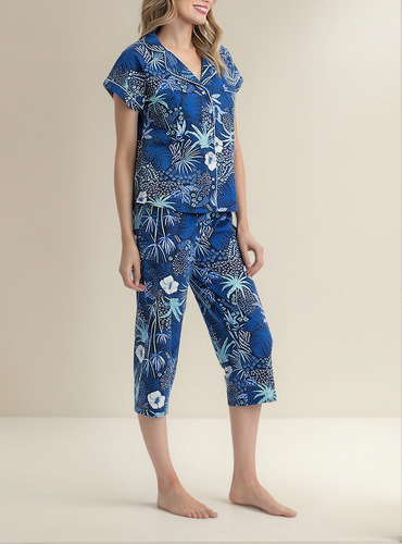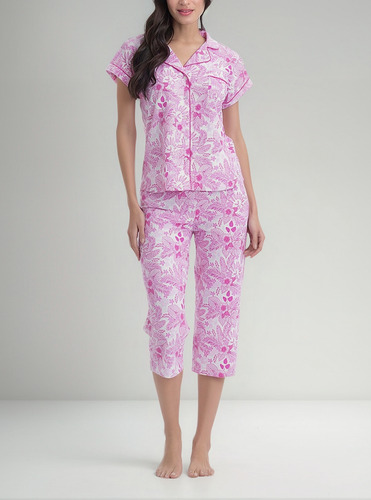 Pijama de algodón de dos piezas. Una polera manga corta suave y cómoda con motivos floreados y un pantalón ajustable con lazo y botones pequeños que te brindarán comodidad a la hora de dormir.