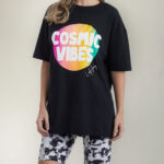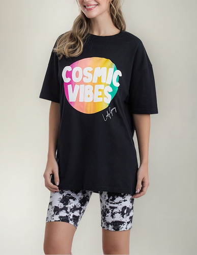 El pijama pensado en las tendencias del momento. Nuestro pijama juvenil «COSMIC VIBES» tiene estilo OVERSIZE que te brindará la comodidad que necesitas. Trae un short con estampado único.