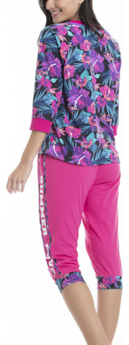 «SUMMER LOVE». ¡Es de los pijamas más coloridos de esta colección! El polerón cuenta con un hermoso estampado floral y el pantalón es capri con detalles floreados y texto combinado