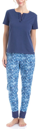 Pijama Mujer Lady Genny J-739 Cotton Estampado Azul L