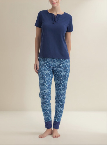 Pijama Mujer Lady Genny J-739 Cotton Estampado Azul Xl