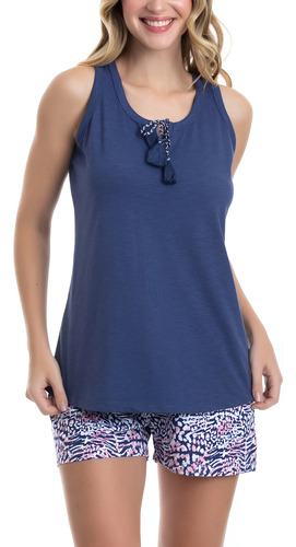 Pijama de algodón suave y femenino, diseñado para brindarte un descanso cómodo y natural. Es la opción perfecta para acompañarte en tus noches de relax, con un toque de frescura y sencillez.