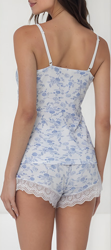 Este hermoso pijama de viscosa es ideal para el verano. Está compuesto de 2 piezas y posee detalles de encaje y un cómodo short. ¡Tu compañero ideal en las calurosas noches de verano!